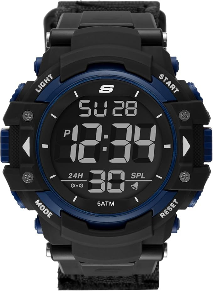 Skechers Men Black/Blue Oversized Digital Watch- SR1035