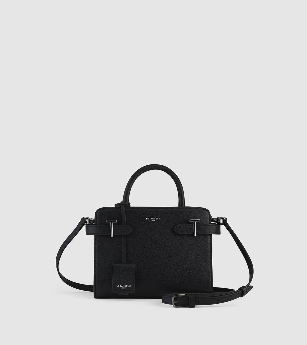 Small handbag with reinforced handles and three compartments, 1 zipped. Features the House's signature, metallic T pieces. Removable charms with Le Tanneur logo. Can be carried by hand, worn on the shoulder or crossbody thanks to its adjustable, removable strap.